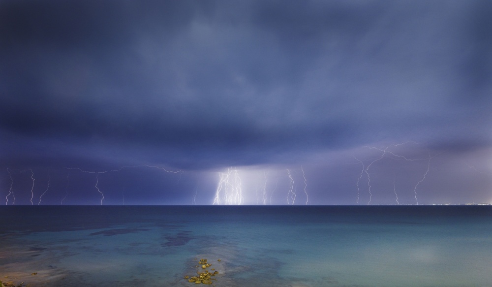 My intention was to capture four elements, namely the random succession of electrical discharges, the speed and force of the wind sweeping across the water, the calm that precedes all such storms, and finally the bass rumbling of the thunder accompanying each discharge, far away in the horizon.